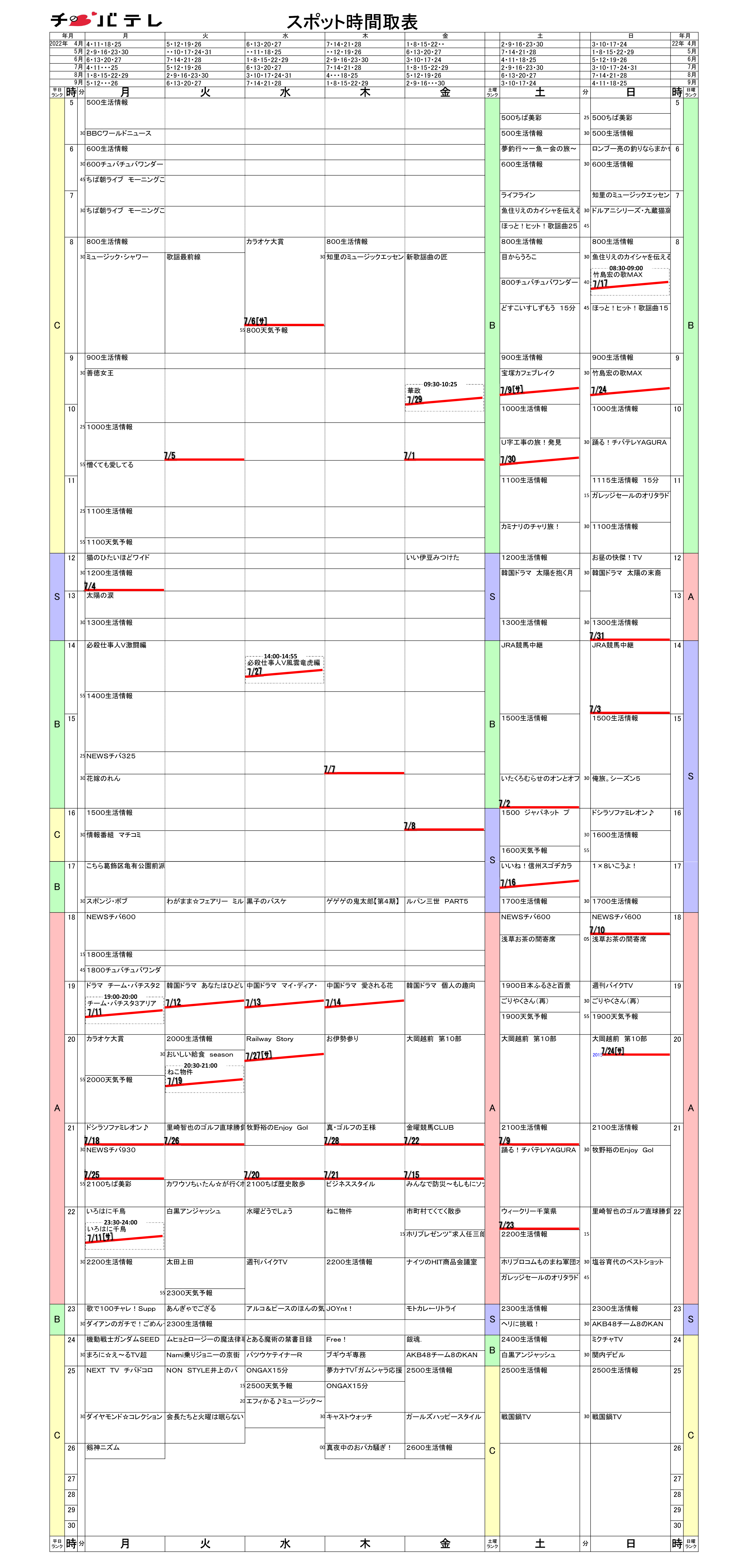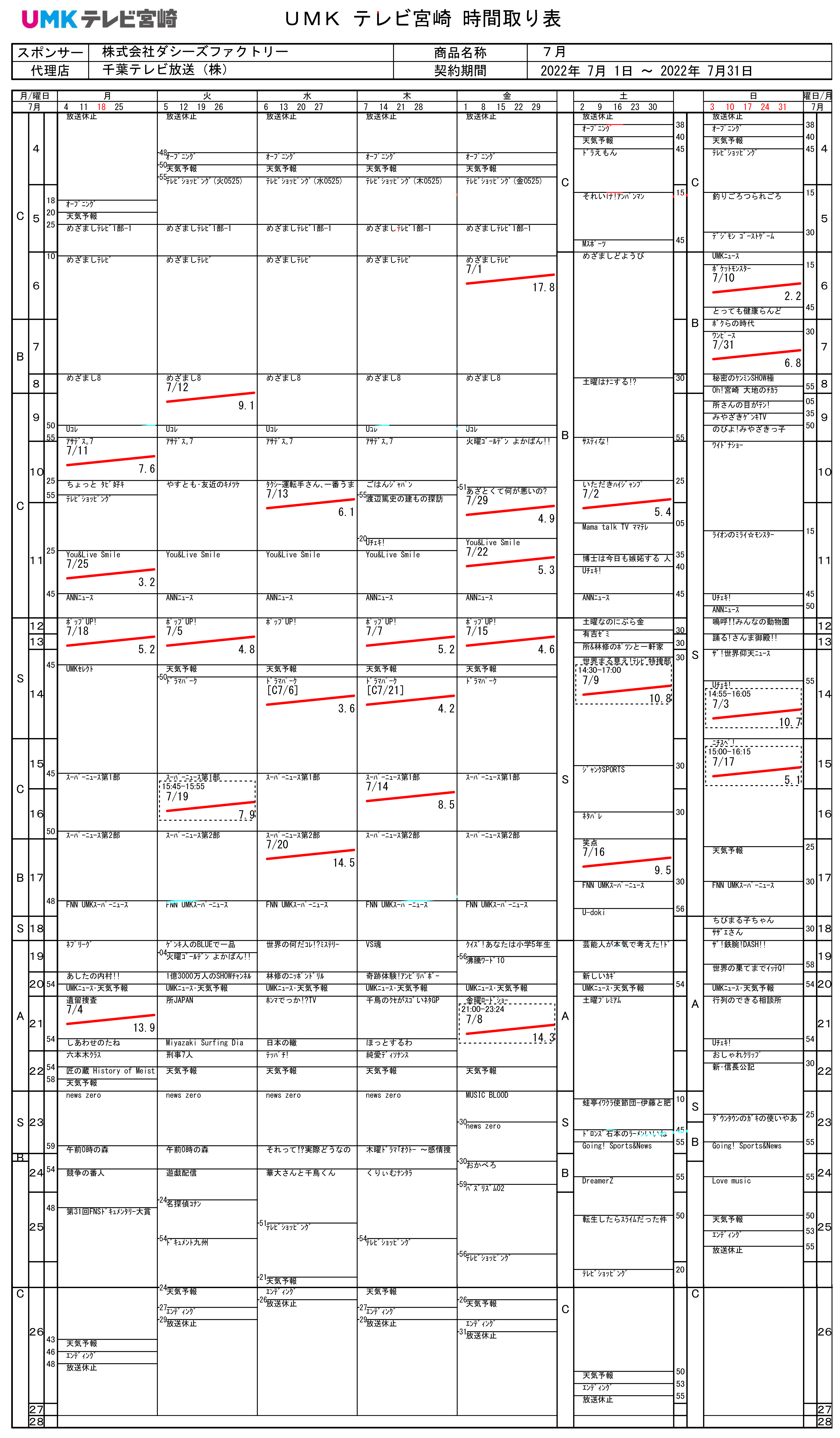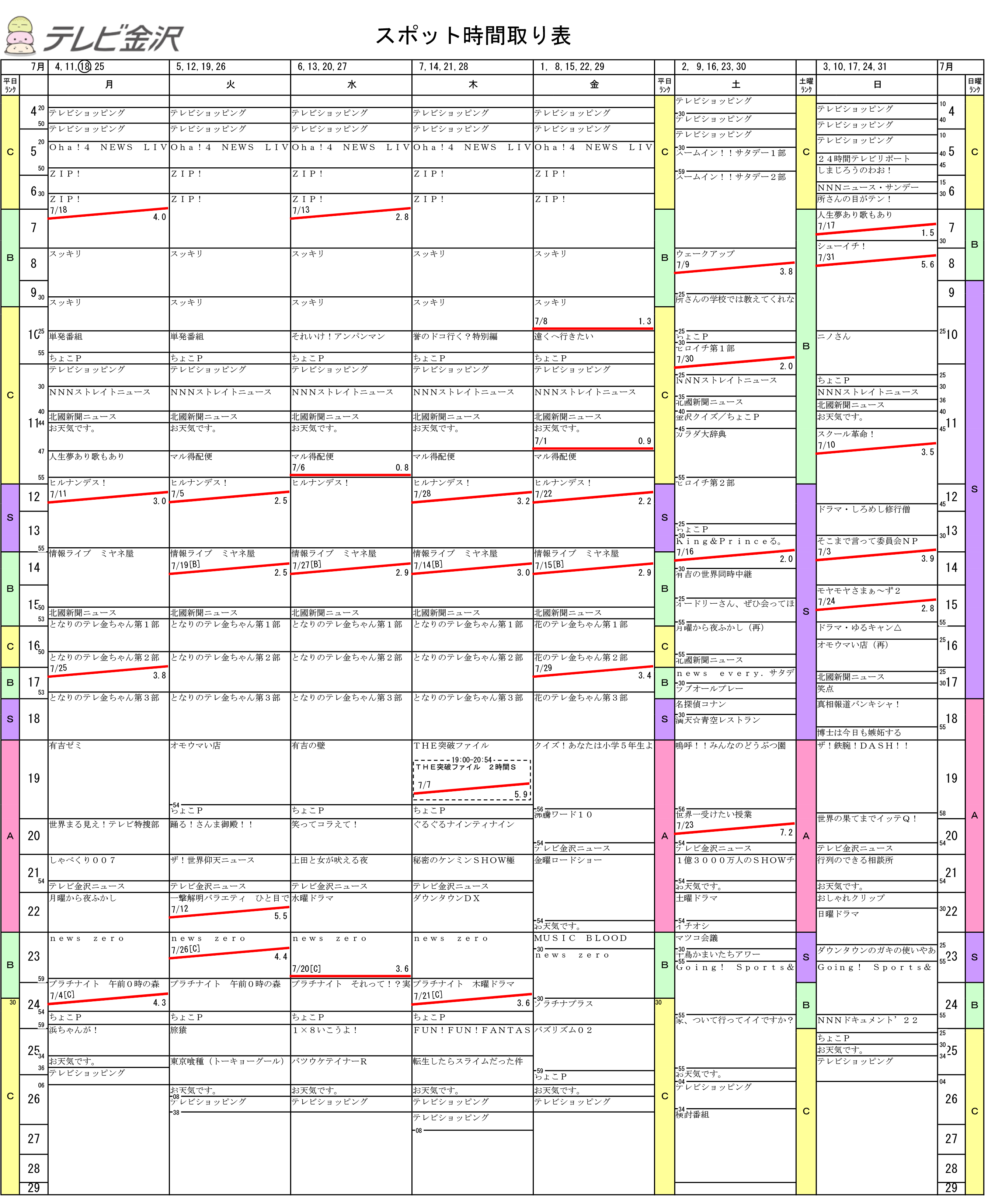 クリックするとCM放送のスケジュールをご覧いただけます。(TVCM放送につきまして、赤い線が入った番組内で放送されます。)